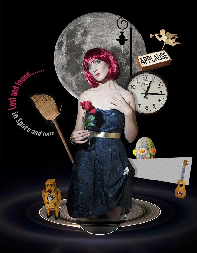 When setting a cabaret show under the title `Lost & Found’, Kate became enchanted by objects from a junk shop next to the performance venue. So, when she requested a poster for the event, I developed a Dada inspired collage, around the theme of being lost in a universe of personal memories, and of craving to be rescued by true love. And voila, here it is, found again! I’d be interested to hear of what it conjures up for you.